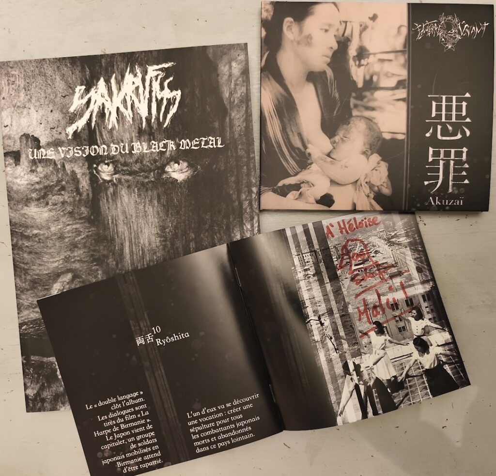 Si j’aime évidemment énormément l’aspect musical de l’album, un black metal très mélodique, je suis également profondément touchée par l’effort d’explication historique attaché à chaque morceau. Du discours d’entrée en guerre de l’empereur (qui ne sera jamais inquiété lors des procès de Tokyo) aux lettres des kamikazes en passant par le difficile rapatriement des soldats japonais en Birmanie (impossible de ne pas avoir les images et la musique du Pont de la rivière Kwai en tête, d’autant que la petite mélodie de Ryôshita reste bien en tête), c’est un tableau déchirant du Japon de l’immédiat après-guerre qui est ici brossé, émaillé d’extraits de dialogues de films, de cris et de chuchotements. Impossible de rester insensible à une telle écoute !