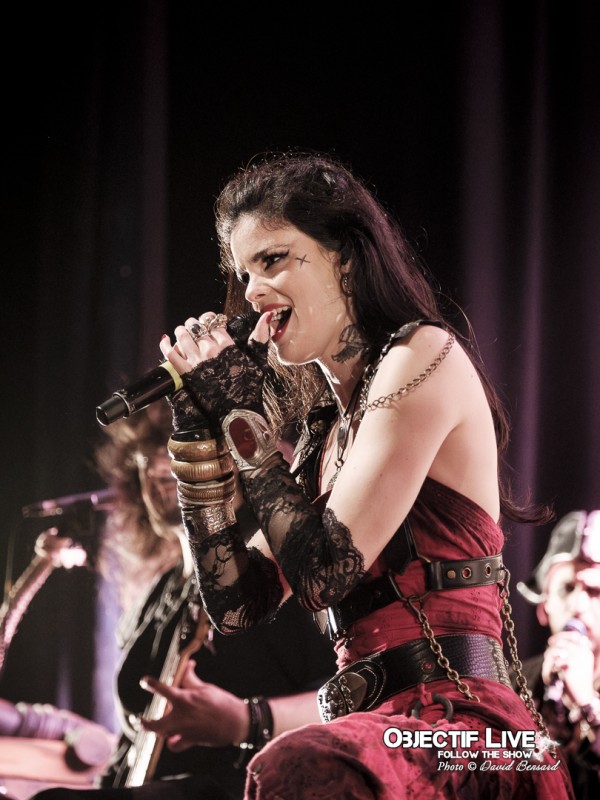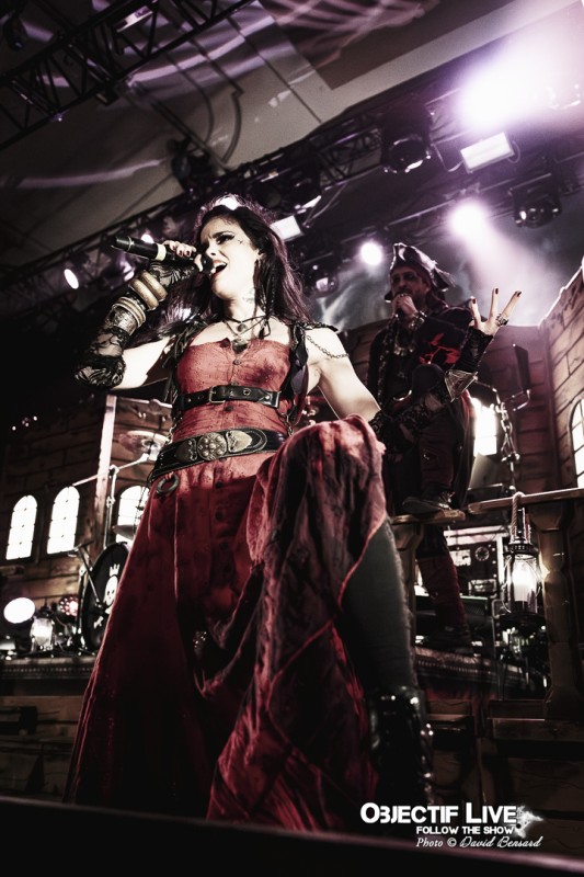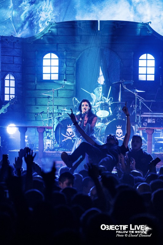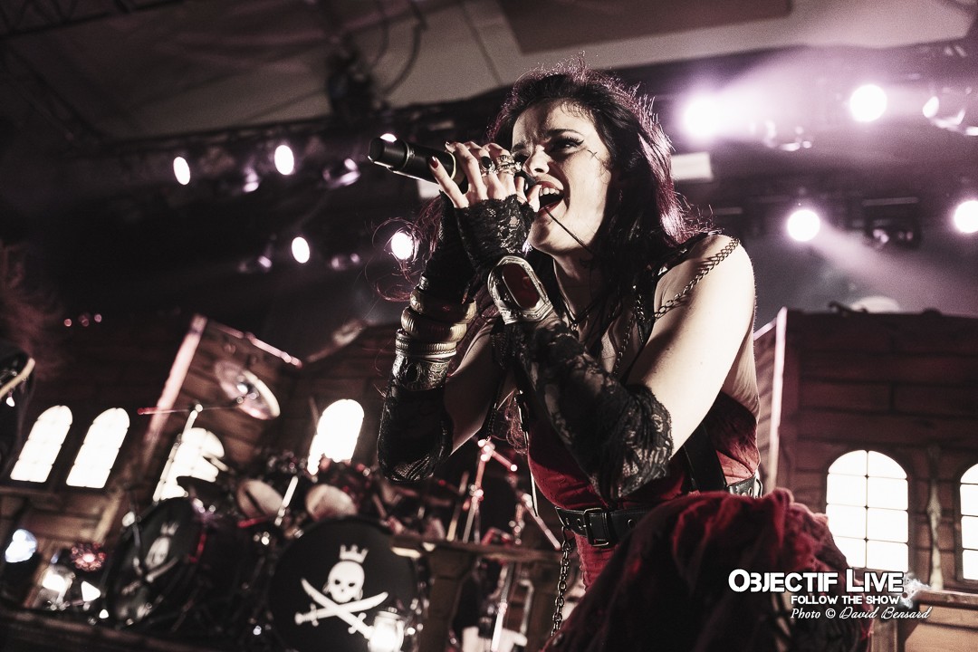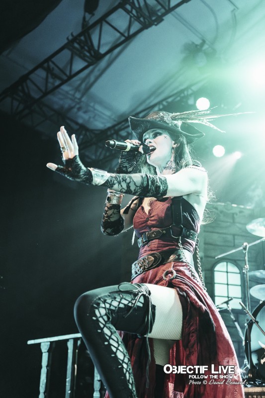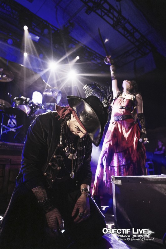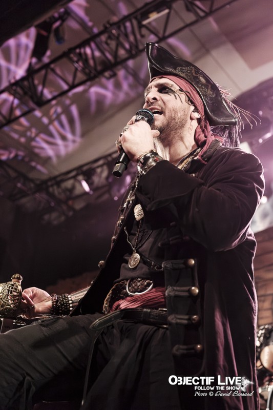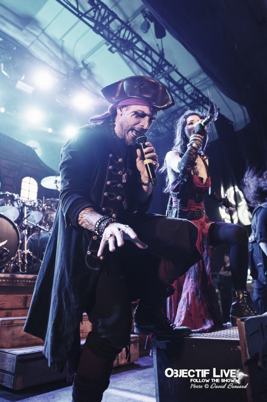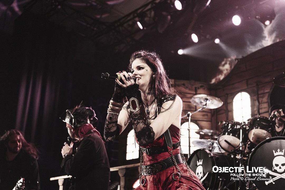 Dès l’ouverture du set, l’identité visuelle est clairement posée : décors maritimes, éclairages bleutés et mise en scène soignée plongent le public dans l’univers pirate désormais emblématique du groupe. Musicalement, la formation se montre immédiatement en place. La section rythmique offre une base solide, tandis que les orchestrations préenregistrées viennent renforcer la dimension épique sans jamais étouffer les guitares. En ce début de Set sous l’interpellation « ça manque de Kings ici » les WARKINGS sont invités sur scène pour interpréter ensemble le Pirates & Kings.
