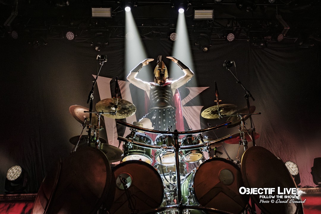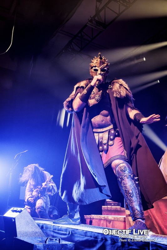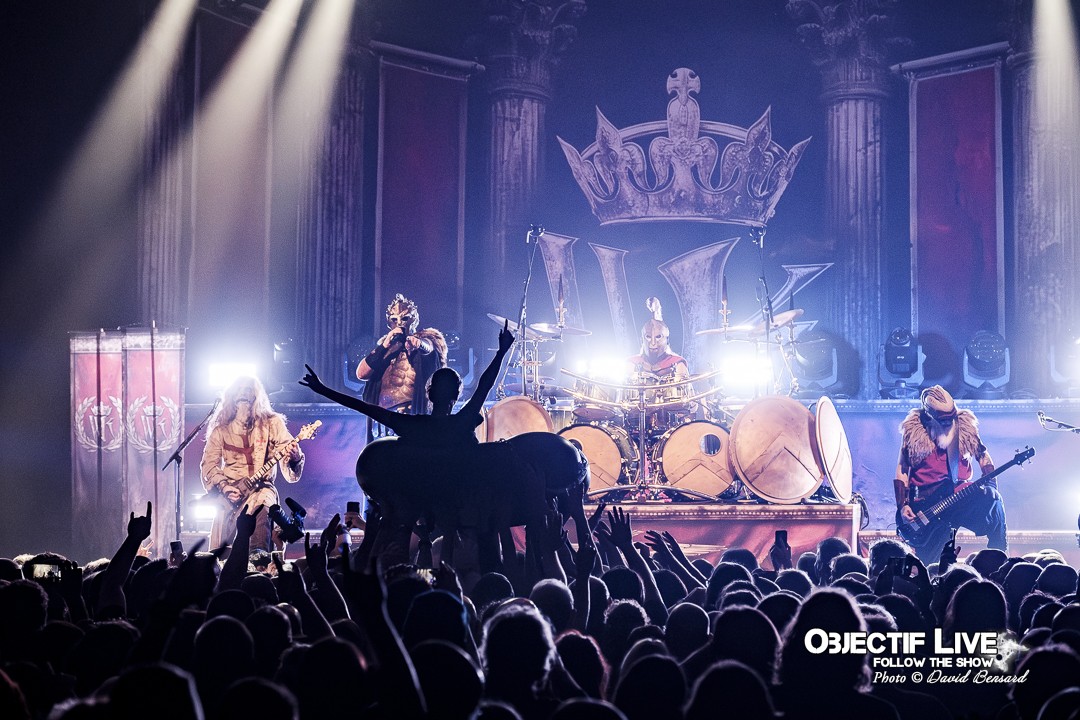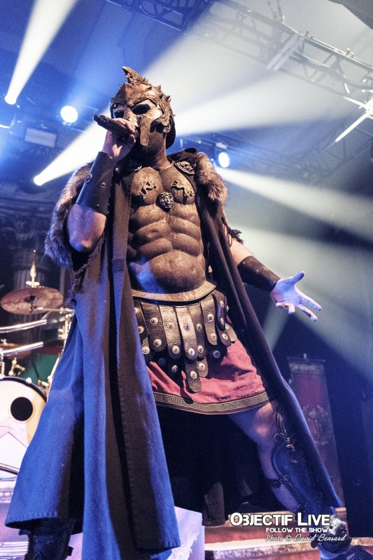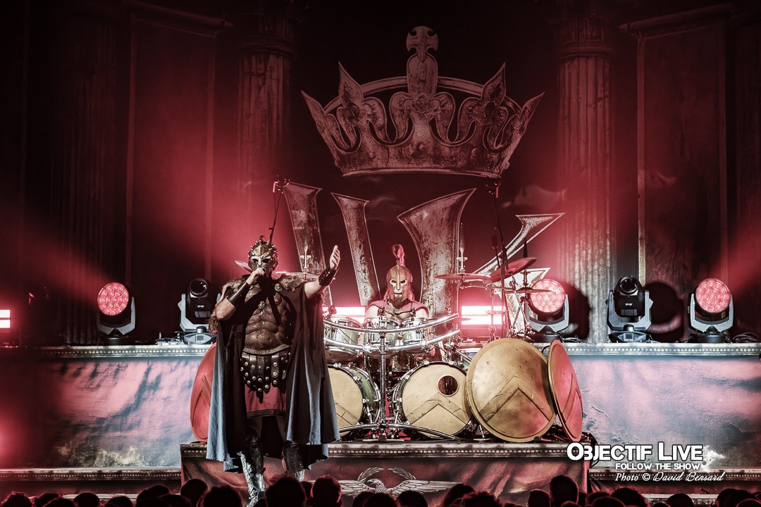 Dès l’entrée en scène, le décor est planté : capes, cuir, poses héroïques et une identité visuelle toujours aussi assumée. The Tribune, charismatique maître de cérémonie, impose immédiatement sa présence, multipliant les appels à la foule, pendant que The Crusader, The Viking et The Spartan lancent les hostilités à coups de riffs tranchants et de rythmiques martelées. Le son est massif, précis, et met parfaitement en valeur des refrains pensés pour être scandés le poing levé.