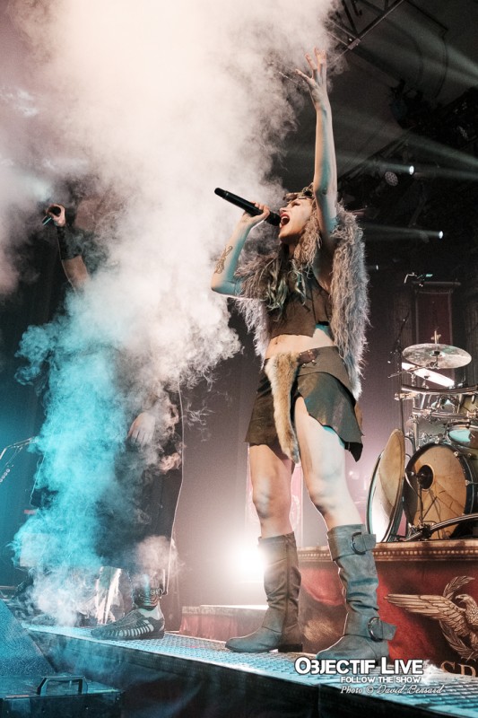 L’arrivée de Morgana le Fay apporte une dimension supplémentaire au show : ses interventions vocales renforcent l’aspect épique et théâtral des compositions, ajoutant contraste et puissance émotionnelle. Les moments de communion se multiplient, notamment lorsque la salle entière reprend les chœurs, faisant trembler les murs de l’Élysée Montmartre.
