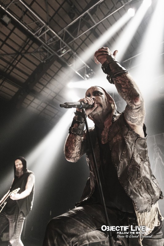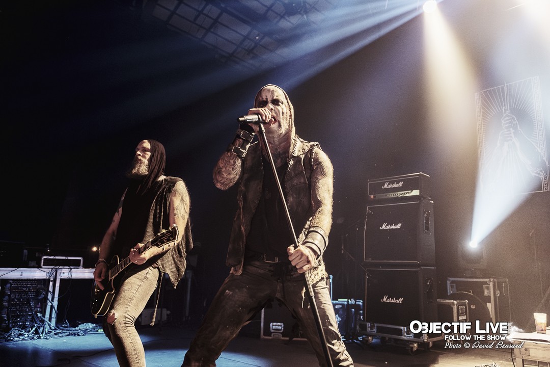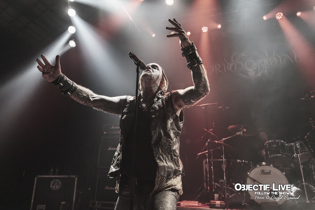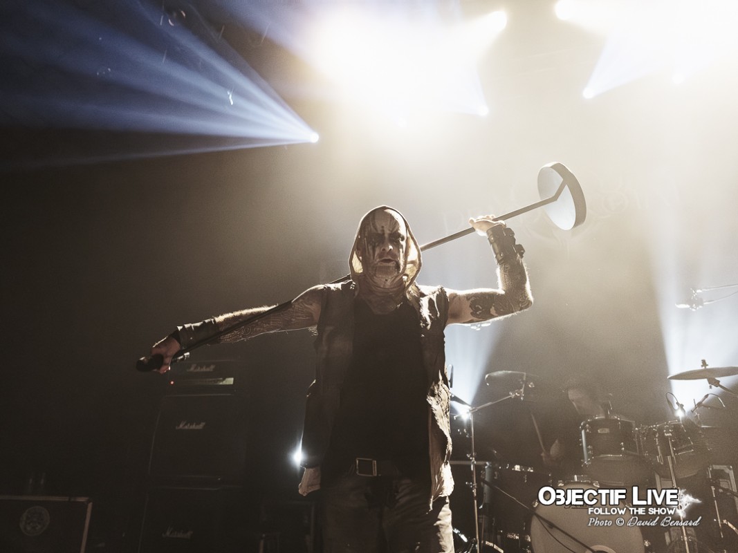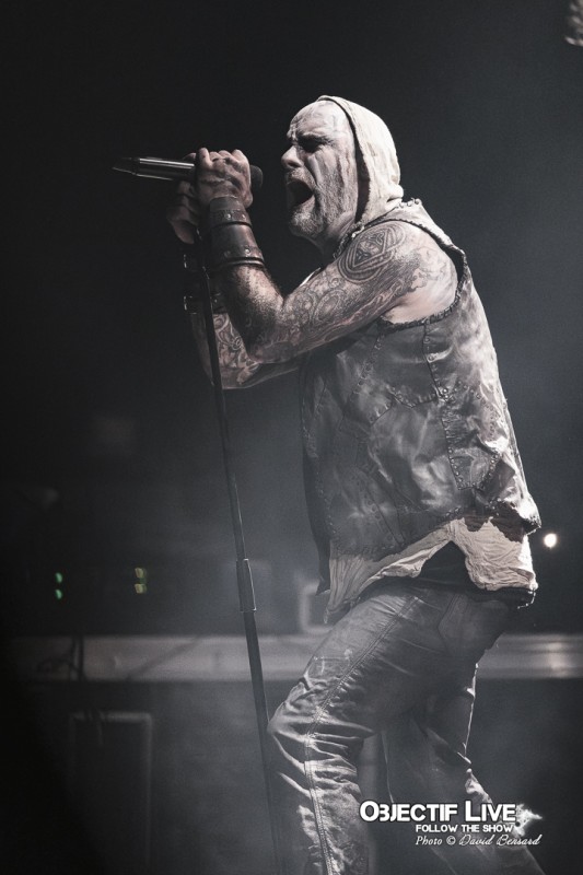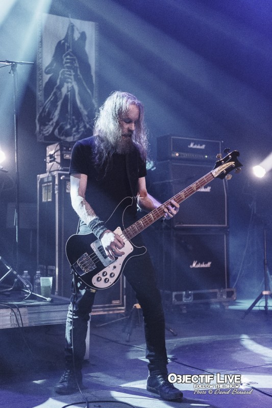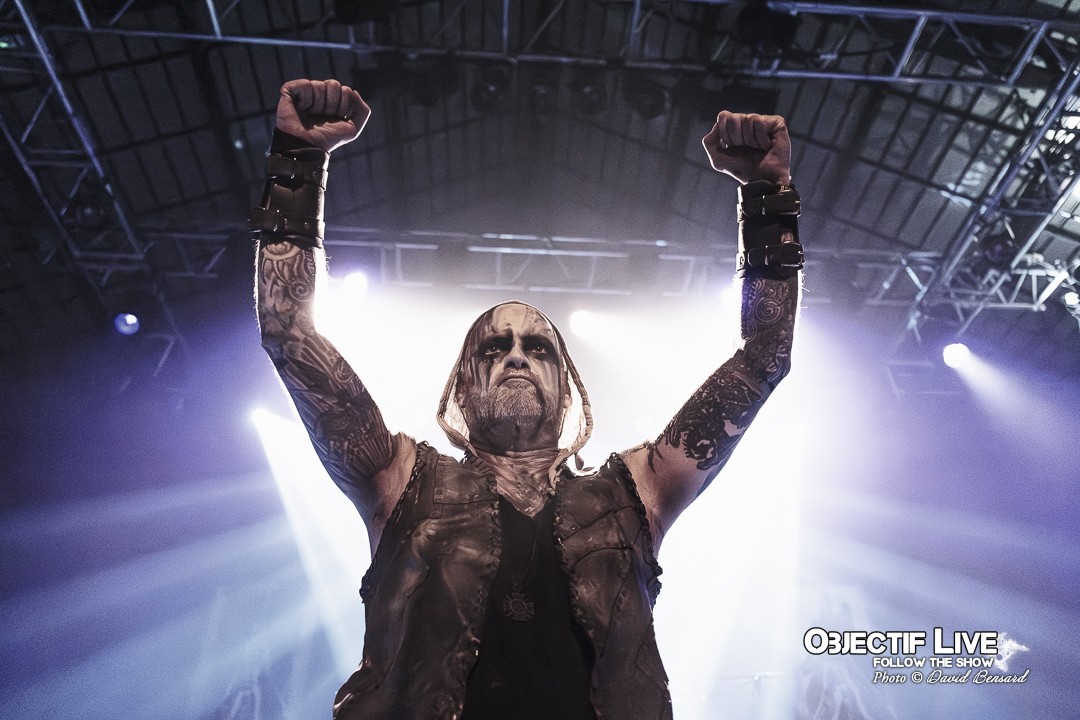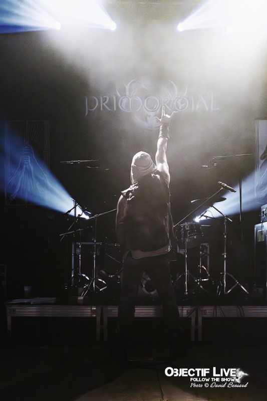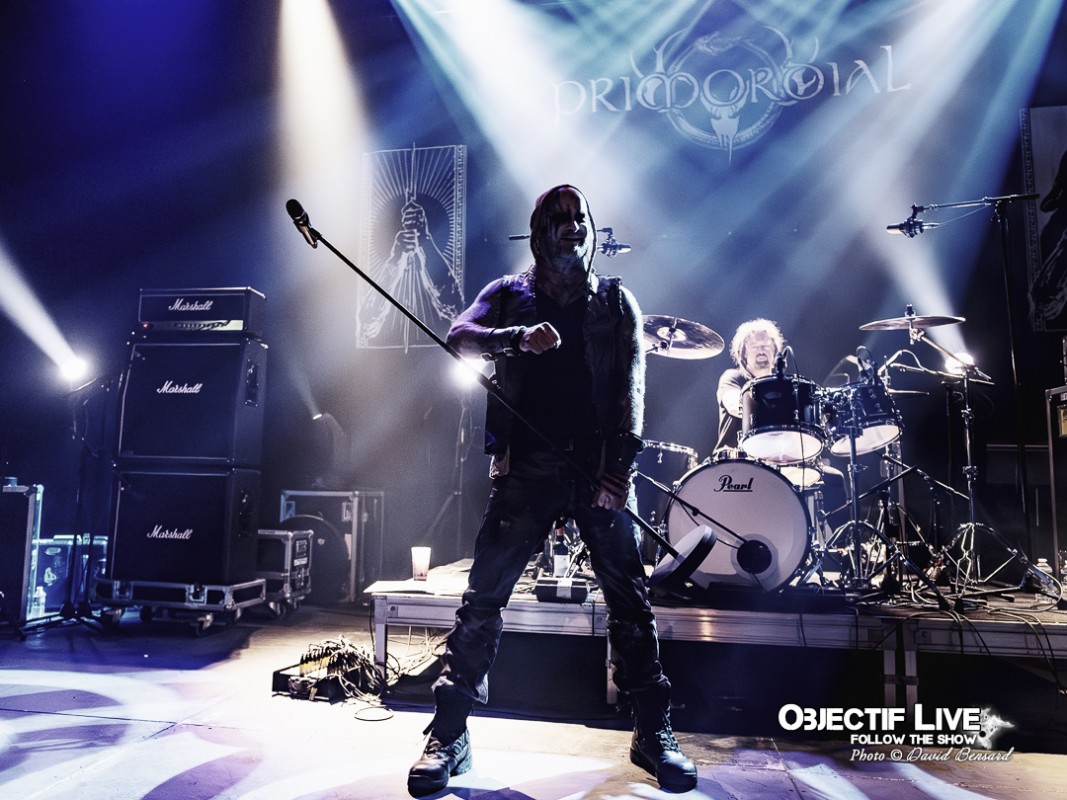Après une interview durant laquelle Alan Averill nous avait semblé bien sombre (et peut-être quelques unes des bouteilles bien françaises aperçues en loge ont-elles eu une salutaire influence sur le charismatique chanteur…) Primordial assure un très beau concert, tout en intensité. “Nous chantons de vraies histoires”, assène A.A. et c’est bien pour nous emmener aux côtés des Irlandais fuyant la famine au XIXè s. qu’il entonne “The Coffin Ships” dans une salle acquise au groupe. Pour les avoir vus plusieurs fois, on n’est jamais déçu par un concert de Primordial, la puissance dégagée par le groupe nous emporte, comme à chaque fois! Clou du spectacle : la dédicace à Bathory, en l’honneur du regretté Quorthon dont c’était l’anniversaire la veille, avec “Heathen Tribes” (album “To the Nameless Dead”, 2007), le titre le plus “bathory-esque” du groupe selon A.A. (qui s’était déjà investi dans le projet Twilight Of The Gods en hommage à Bathory dès 2014). Pas de “Call to Cernunnos” hélas (c’était pourtant le lieu ou jamais!) mais une très belle setlist qui s’achève en apothéose avec ‘Empire falls”. Sans nul doute l’un des trois concerts du week-end, avec Stille Volk et Skyforger.